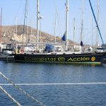 The sailing yacht Diosa Maat, of Ecologistas en Acción, stops at Yacht Port Cartagena during its navigation along the Mediterranean fighting the mass of garbage in the sea.